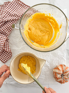 Fouettez, ici j'utilise un batteur à main c'est largement suffisant pour cette recette. Versez la crème liquide et la purée de potimarron.